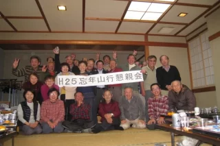 月報「わっぱ」 2014年1月(No.386)【 還暦祝賀会・懇親会(月例山行)】  かみいしづ緑の村公園「奥養老」  日程:2013年12月14日(土)会場:大垣市山林体験宿泊施設「奥養老」参加者: 長く続けてきた還暦祝賀芋煮会は今年から...