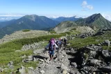 今年初めての沢登りで、昨年のソーレ谷に続き飛騨の沢。地上は酷暑だが、沢の中は心地よい冷風が吹いていた。会のベテランは、沢ハイキングとのたまう。さて、私は今回2度目の沢である。前回、山岳会の大先輩と2人で行った時は、沢の素晴らしさより大滝をまいた時のロープワークと藪の草に泣いた記憶が強かった。今回はベテラン勢の参加が多いので、前日までに八の字結び(エイトノット)だけは覚えて行った。総勢17名で、私を含めて初心者が3名参加していたので幾分気持ちは楽だが、リーダーは大変だろうと思った。初心者にはそれぞれにサポート役がつき更に心強い。