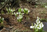 先が長いので休憩を短縮して恋姫山の登山道から林道を使い榑沢池神社まで下りる。この池にはモリアオガエルが生息していて、池の木には卵が沢山生みつけられていた。