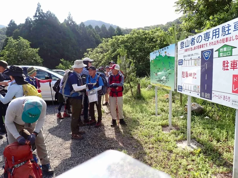 駄口という集落のドライブイン向かいの駐車場から登山開始。