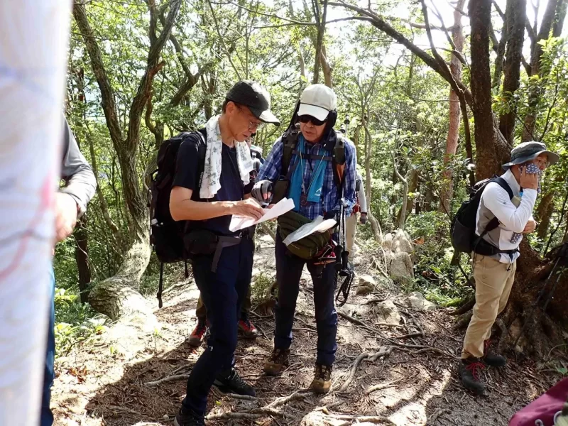 道はよく手入れされていて明瞭でしたが、登山道の方向が変わるごとに地図を見て読図をみんなでしていきました。まだままならない私はとても勉強になりました。