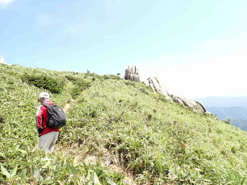 同時に花崗岩の岩が見られるようになり急坂を登りきると大きな岩が点在しています。