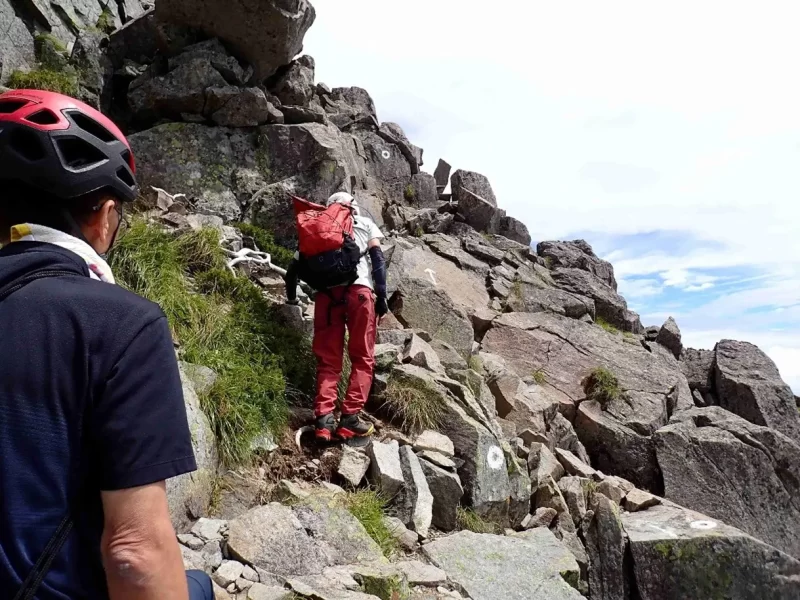 〇印を見失わぬよう3点支持を意識して、掴む岩や足場を固め慎重に進む