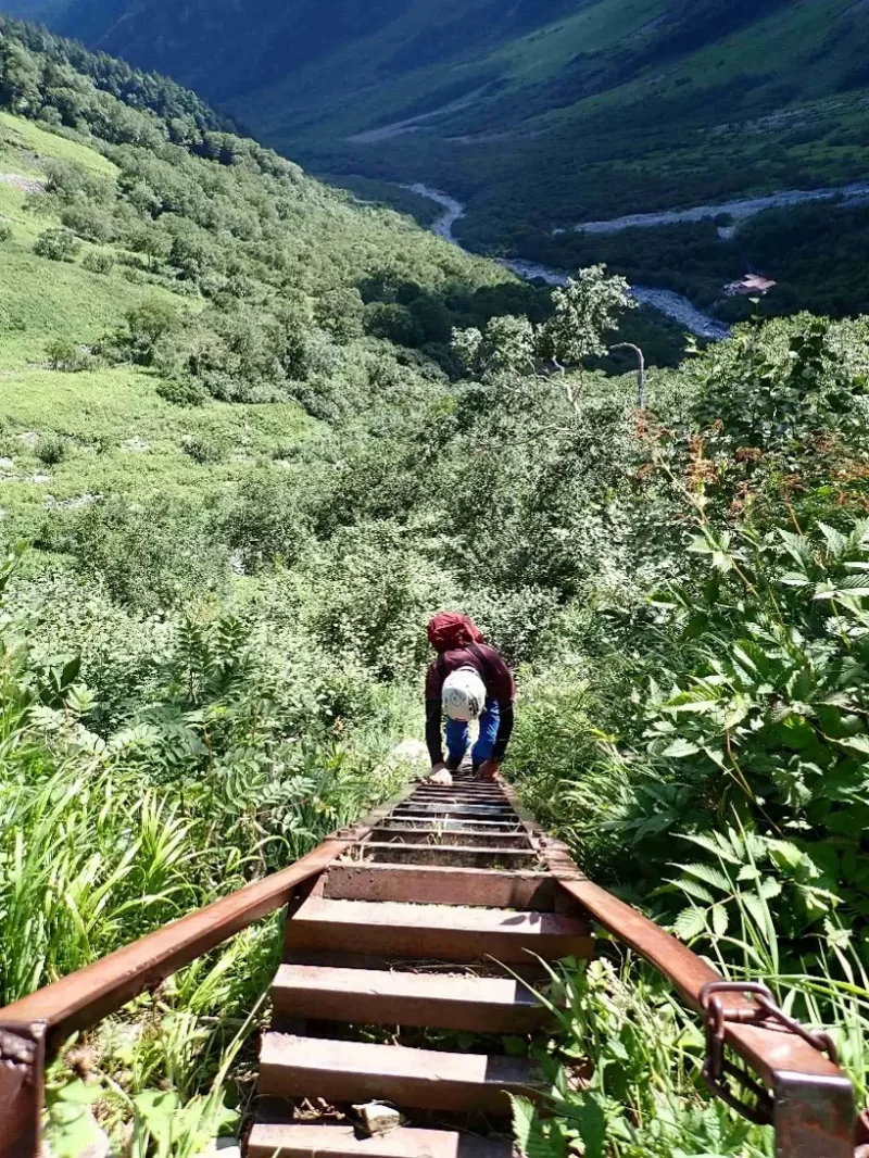 最初に現れるかなり長いハシゴが不安だったが、予想よりも若干傾斜があり、とにかくまずは下を見ず登るだけ