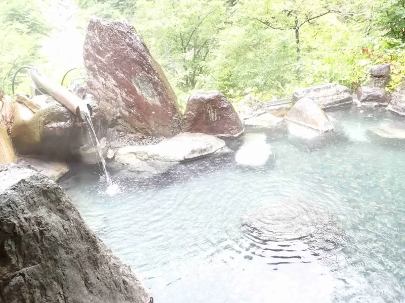 帰路、秘湯の坂巻温泉で汗を流したが、雨に打たれながらの露天風呂は何とも風情があった(お薦めです)
