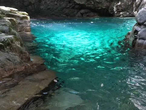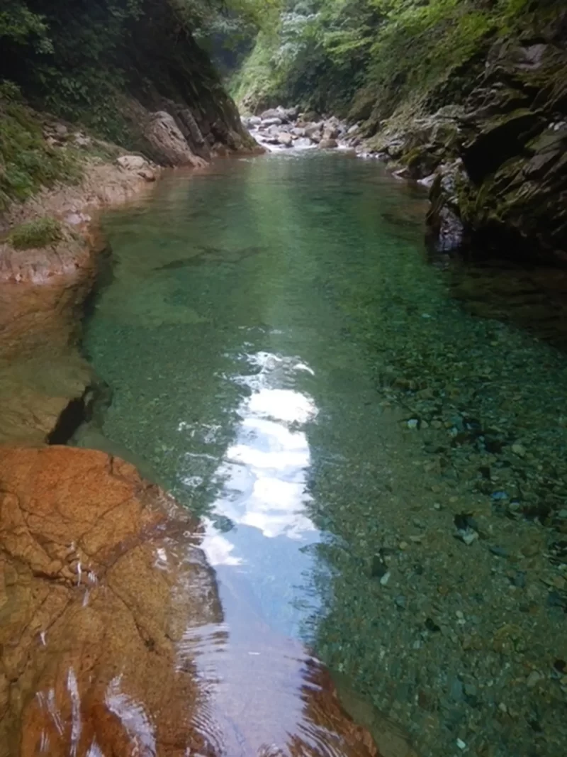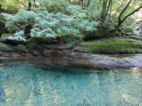 奥に進むにつれ淵は深さと青さと美しさを増していきため息が出る。