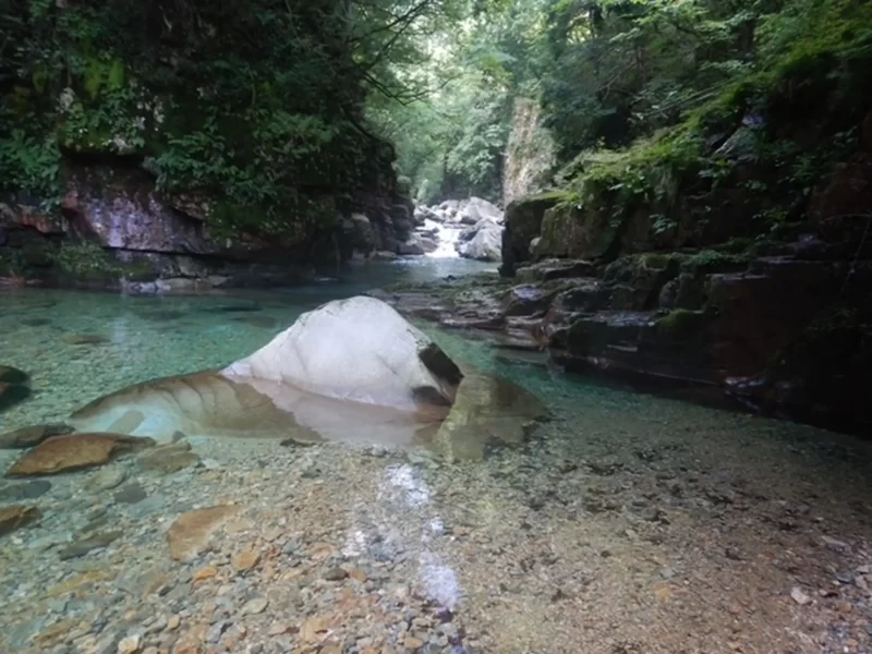 出合のゴルジュを抜けるとゴーロと青々とした淵が交互に現れる。