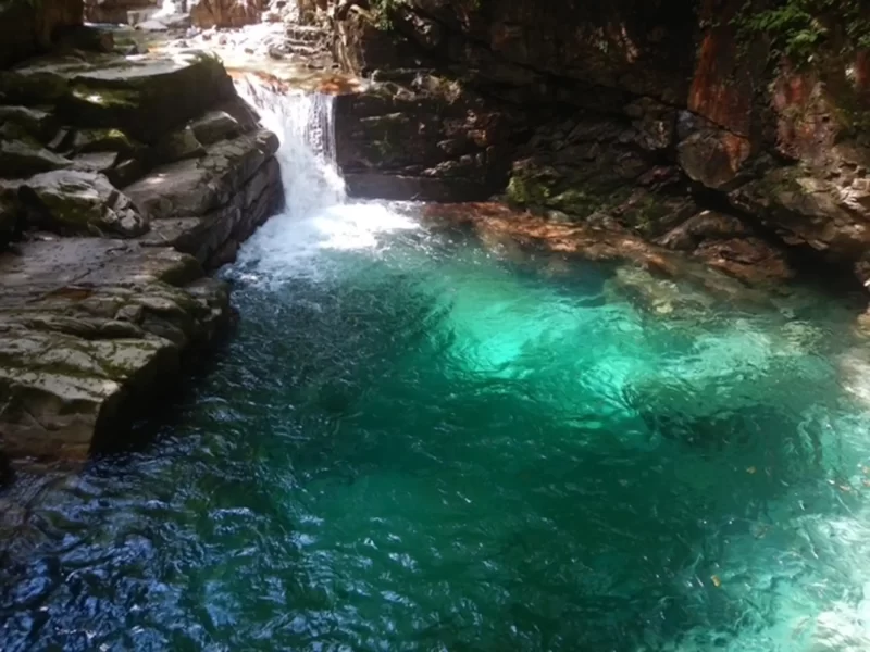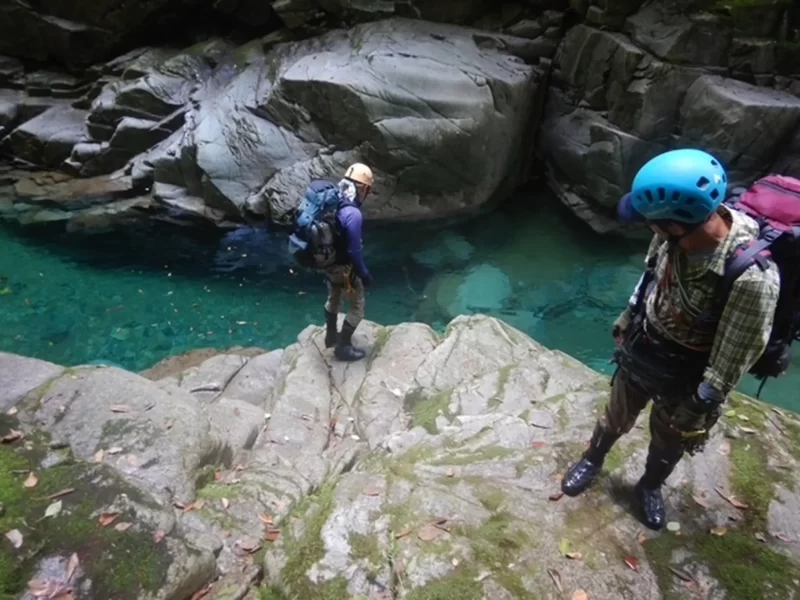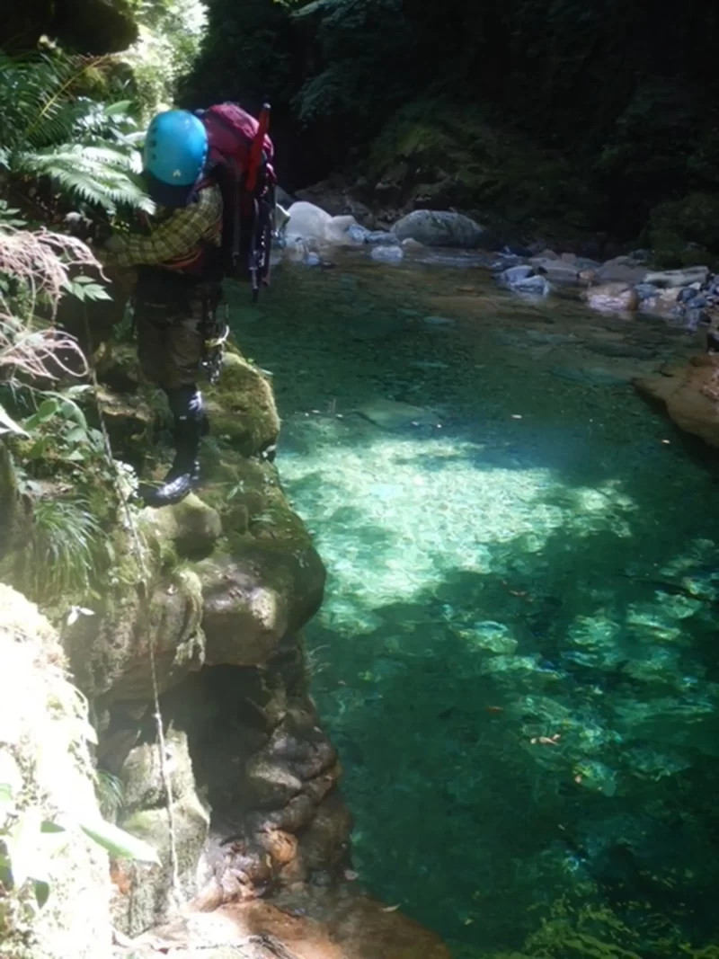 水は澄んでいるが岩には藻がついてやや滑りがあった。