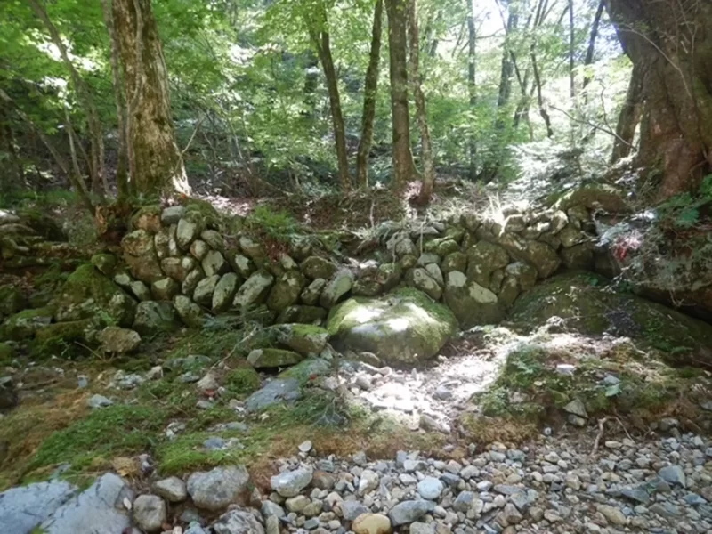ここから少しで右岸に石積みが現れその僅か先が本日の幕営地、大ヤマタ出合だ。