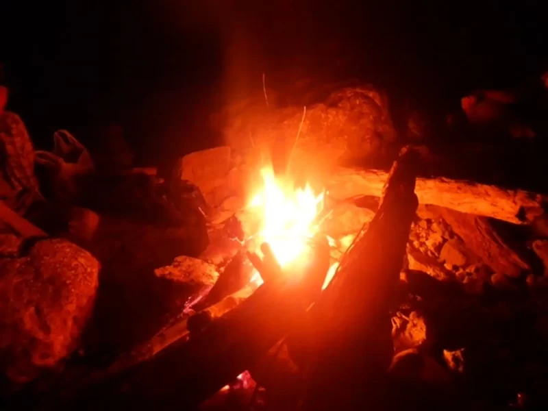 その後はそれぞれのんびり過ごし、夜のとばりが落ち始めた頃から火を囲んで談笑しながら食事をとった。