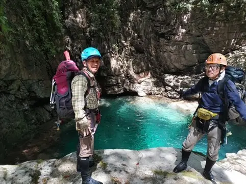 西ヶ洞遡行の最大の難関である川浦谷川本流の渡渉もこれなら問題なさそうだ。