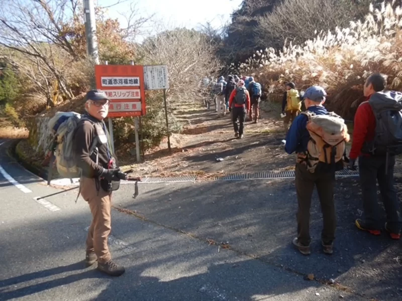 駐車場から33名の大パーティが出発する姿は壮観だった。