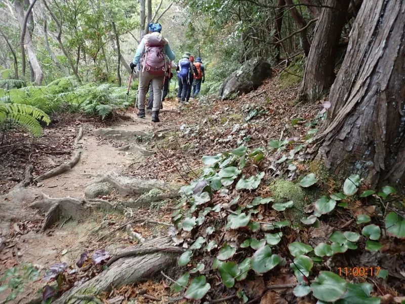 オオバイワカガミ(イワウチワかも?)の群生が有って春が待ち遠しい。道中、ウラジロも多かった。ムラサキシキブの紫の実とソヨゴの赤い実も印象的だった。