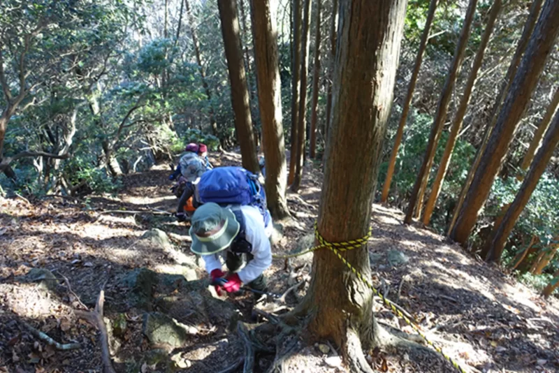 根っこやトラロープを頼りに急登する。
