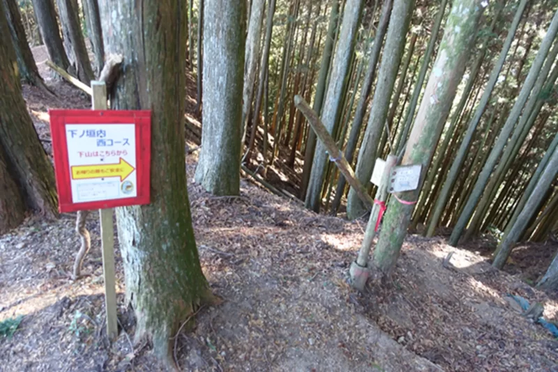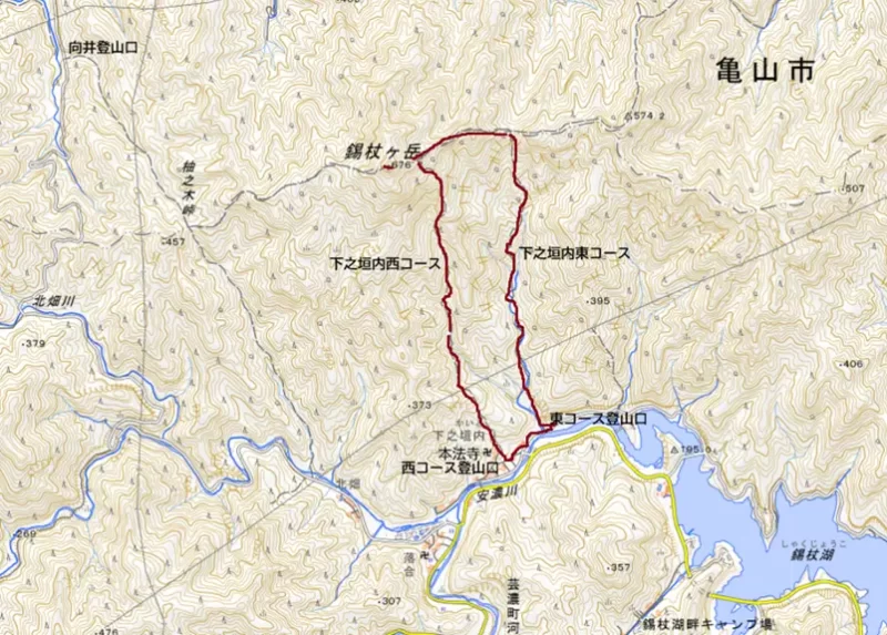 津市側の農業用の安濃ダムのダム湖錫杖湖の奥、にあたる津市芸濃町下之垣内集落に駐車し、下之垣内東コースから登り、同西コースで下る計画とした。