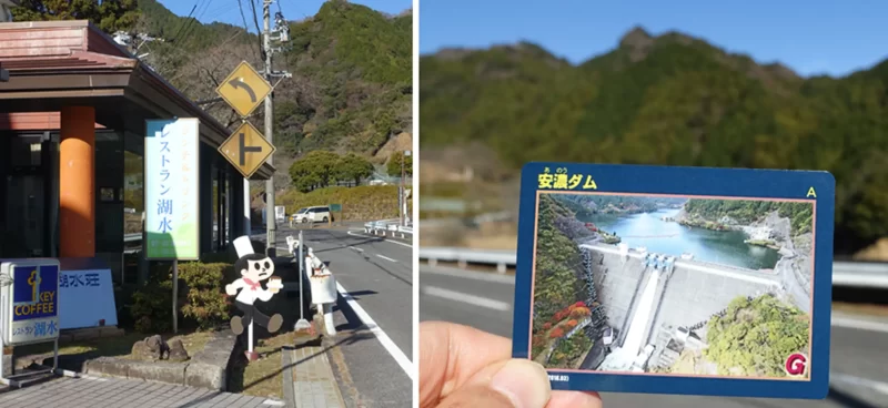 途中の錫杖湖水荘では、安濃ダムのダムカードがもらえ、コレクターのGさんは満足げ。