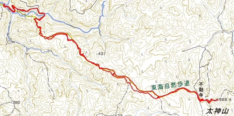 - 行程:某駐車場8:00=関ケ原IC=瀬田IC=三上田上県立駐車場9:30ー太神山登山口9:50ー泣き不動10:40ー矢筈ヶ岳分岐10:45ー不動寺山門11:00ー不動寺11:10ー太神山11:30~12:00~登山口13:30=某駐車場14:30