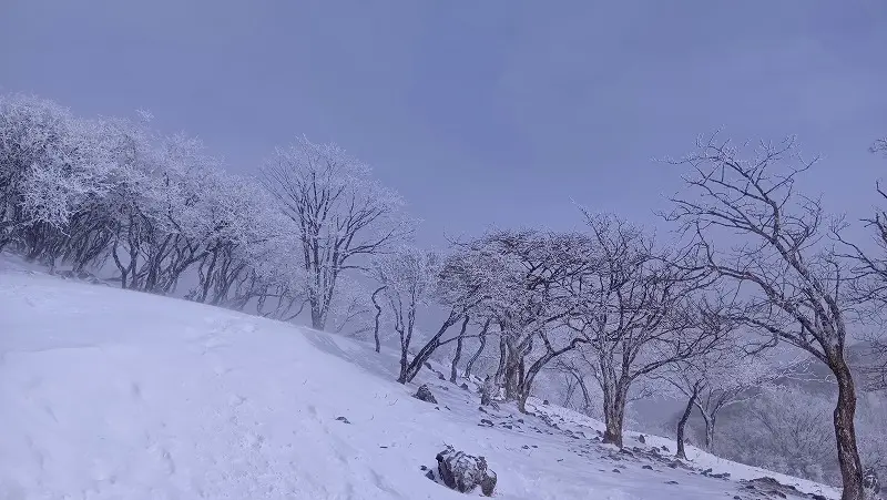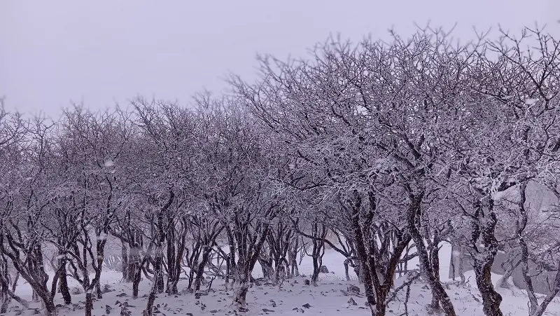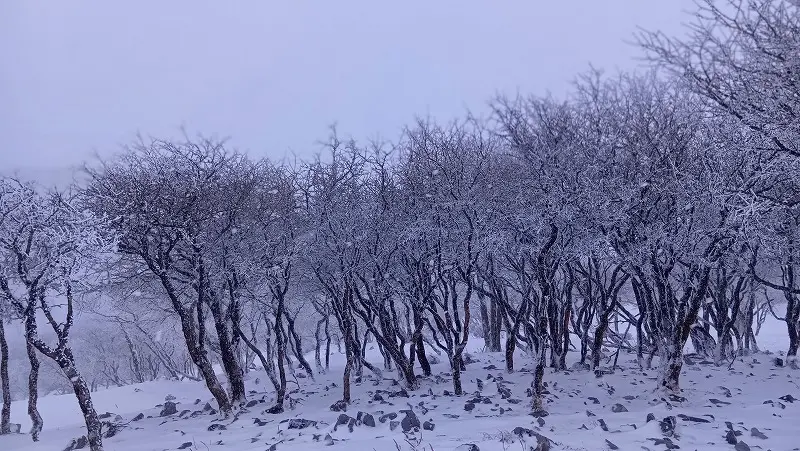 霧氷は氷点下の気温と強風という条件がそろわないとできない自然の贈り物だ。