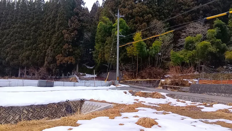 付近に駐車をして林道を眺めたがやはり除雪はされていなくここから国見峠まで2時間近く歩かなければならない。積雪はおよそ10cmほど。