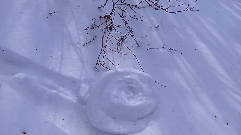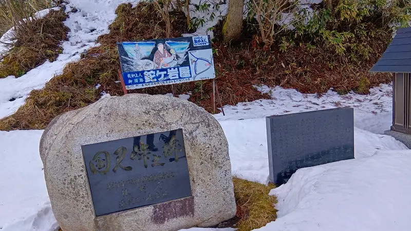 下山の時に国見舗装道路を歩いていると急な岩壁から雪の塊がトリプルコーク1440のような勢いで転がってきた。